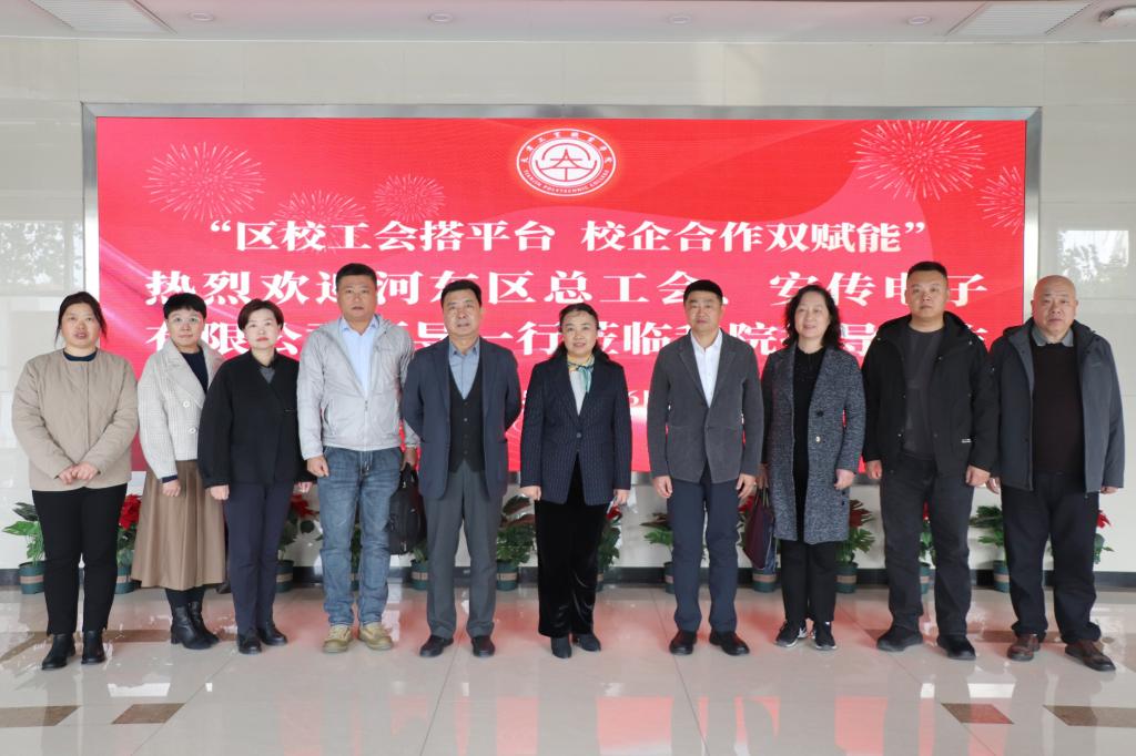 2025 年 11 月 6 日下午,天津工业职业学院校园暖意融融。河东区总工会、天津安传电子有限公司与学院以“区校工会搭平台 校企合作双赋能”为主题,联合开展系列交流合作活动。政校企三方齐聚,旨在共探产教融合新路径,为区域高质量发展凝聚合力。